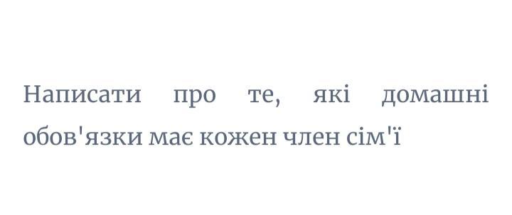 Відповідь: тобі треба написати яку роботу робить кожен в домі наприклад: мама-миє посуд та поливає квіти