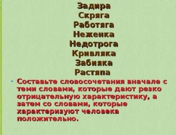 Наглый задира, старый скряга, ноющий неженка, известная кривляка, одинокая недотрога, школьный забияка, проспавший растяпа.