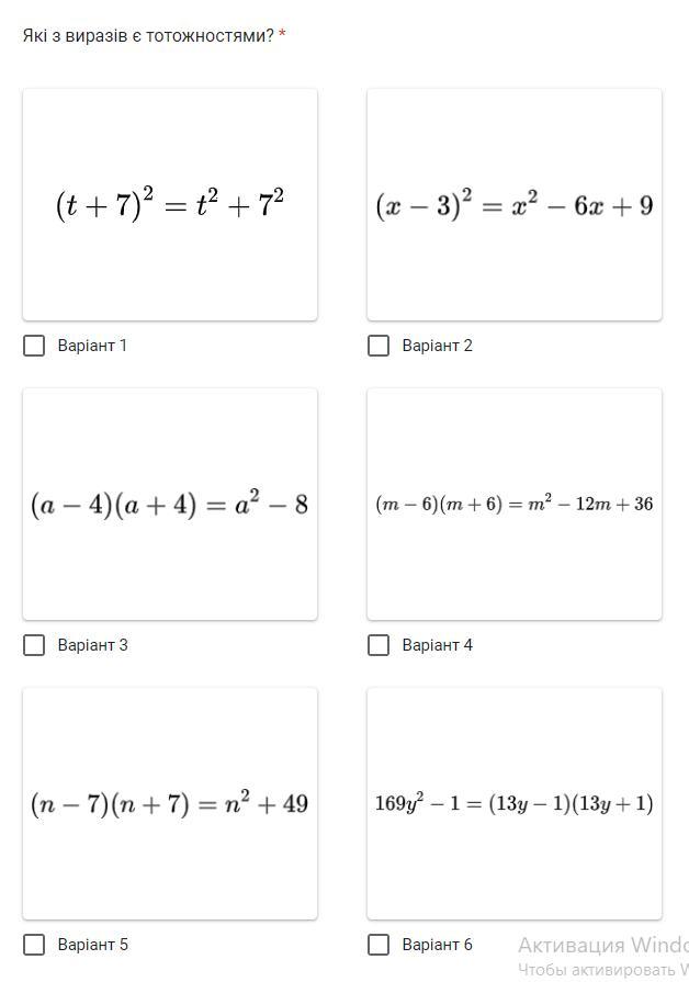 Вариант 6: Формула: (a - b)(a + b) = a² - b² , подставляем, проверяем, вариант подходит. Касательно других случаев, то они не подпадают под формулы, откуда и был взят результат.