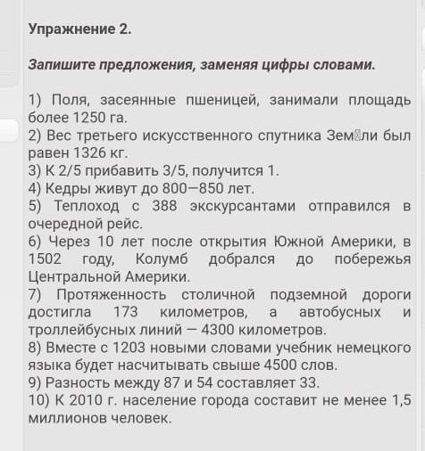 Запиши предложения, заменяя цифры словами.