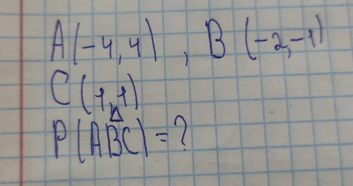 AB = √(xb - xa)2 + (yb - ya)2 = √(-2-(-4))²+(-1-4)²= √4+25=✓29