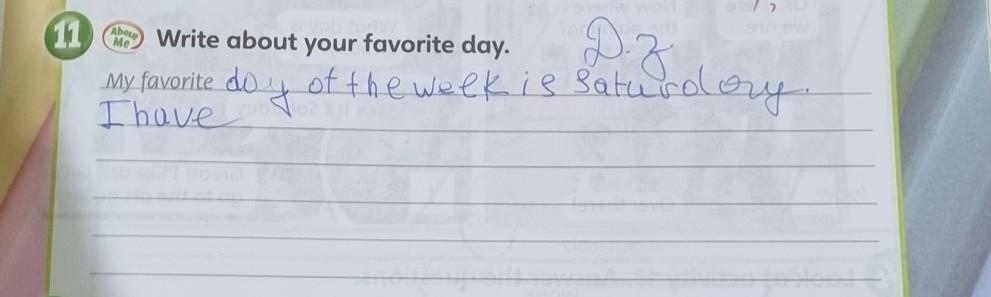 Это домашний работа 11 Write about your favorite day. My favorite day of the week is Saturday. I have я дальше не знаю ПЖЖЖЖЖЖЖЖЖЖЖЖЖ ПОМОГИТЕ пожалуйста