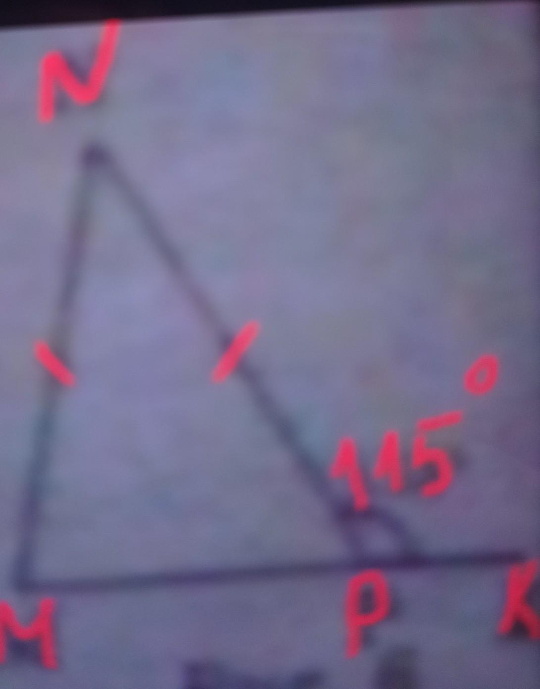 Трикутник MNP-рівнобедренний MN=PN Зовнішній кут NPK дорівнює 115° Знайдіть кути трикутника MNP