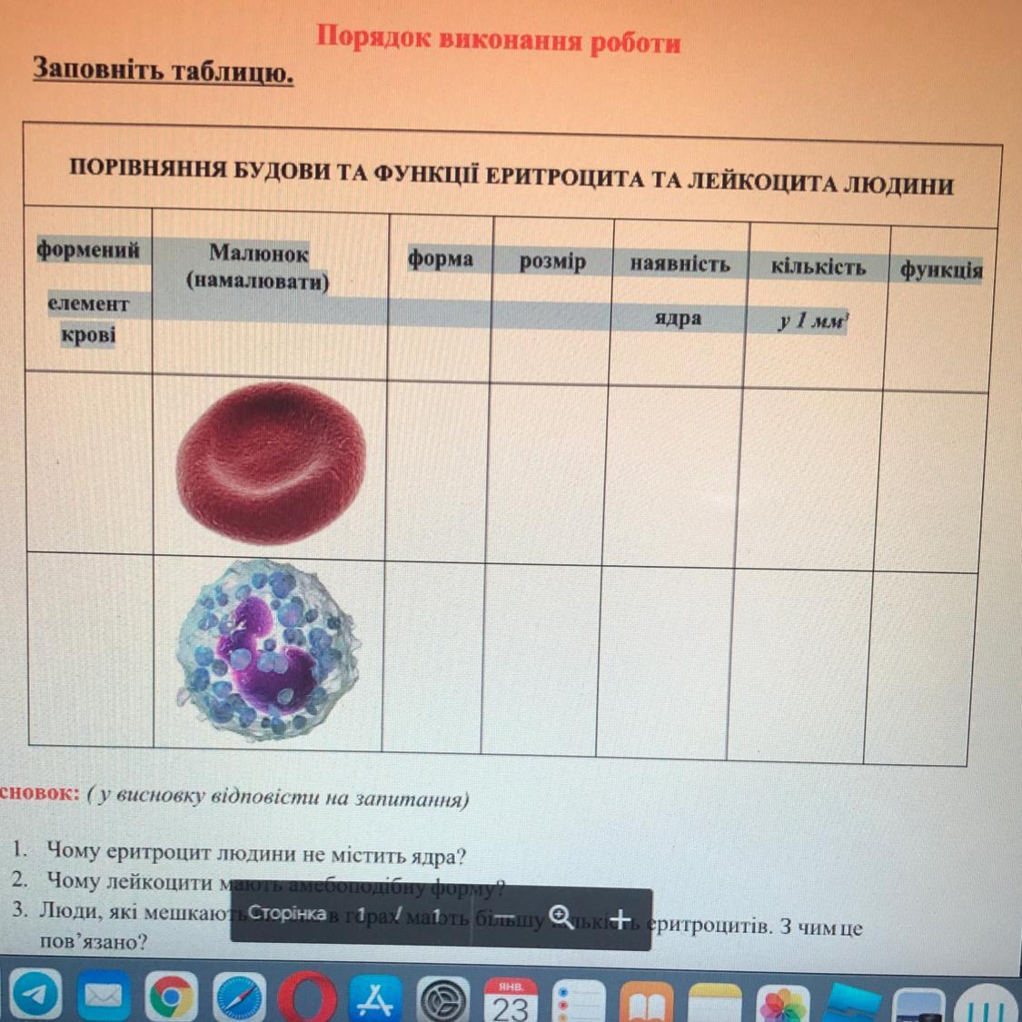 1 название эритроциты форма двояковогнутый к центру диск розмер диаметр 7-8 мкм толщина 1-2 мкм в 1 мм³ содержится 4-5 млн эритроцитов функция переноска кислорода