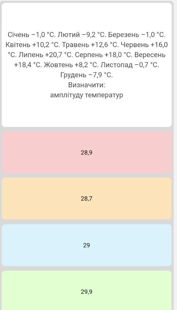 амплітудою температур буде 28,7.