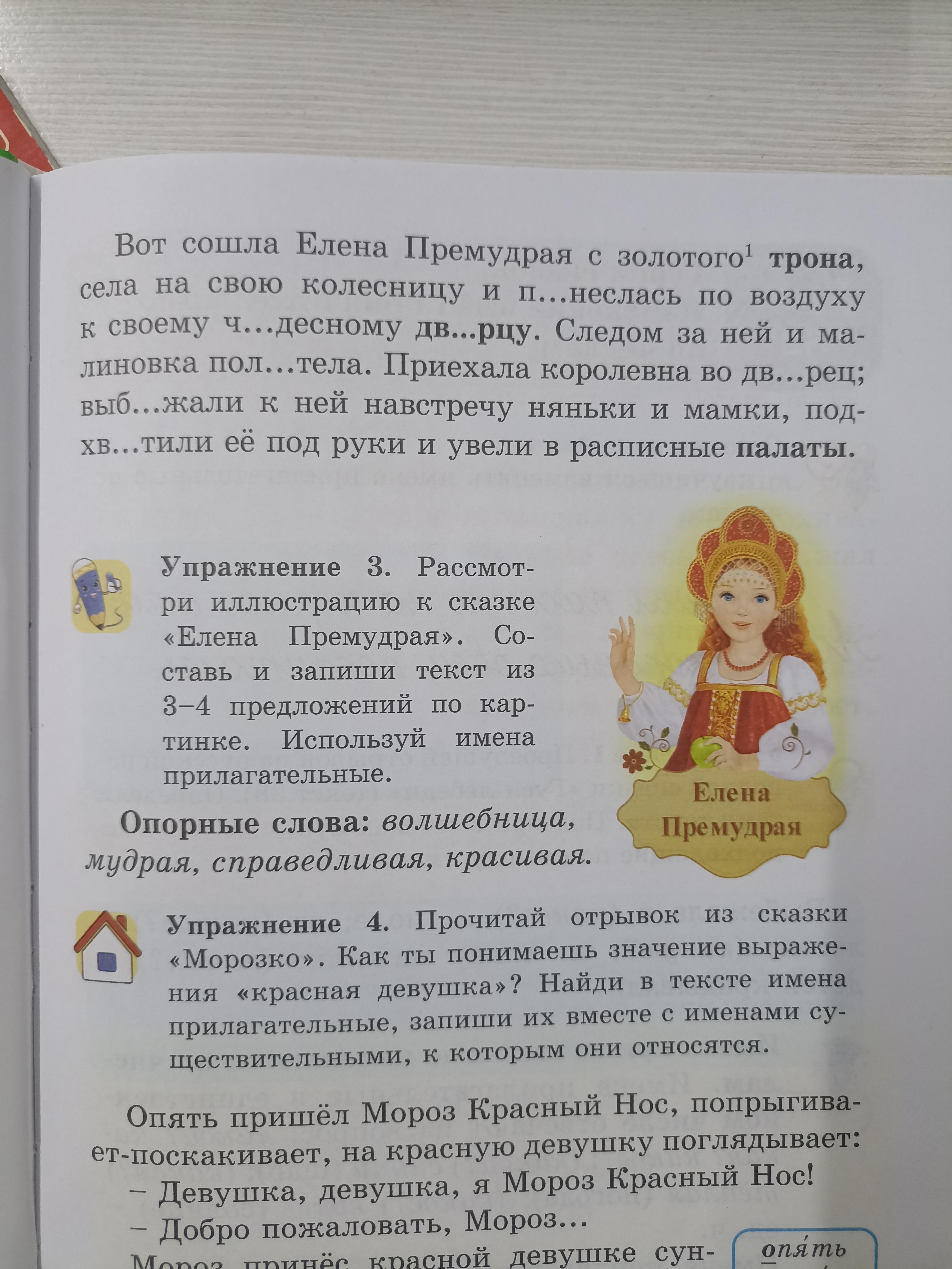 Просчитай отрывок из сказки "Елена Премудрая". Задай вопрос от выделенных имён существительных к именам прилагательным . Запиши их . Вставь орфограммы.