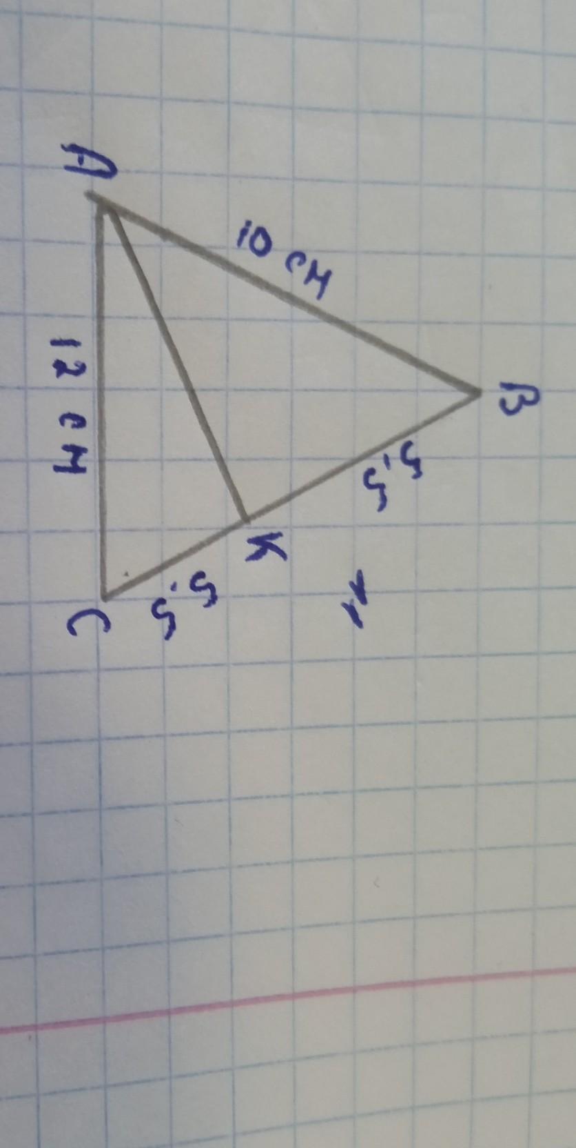 Відрізок АК - бісектриса трикутника ABC. Знайдіть: відрізки ВК КС, якщо_AB=10см, АС=12см, ВС=11 см