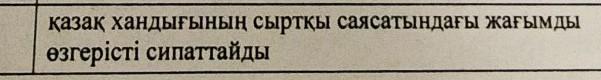 Мысалға Абылай хан сыртқы саясатты жақсы жүргізе білген.Келісімсөздерді асқан шеберлікпен жүргізген.Және басқа да хандар бар.Яғни олар шет елдерден қазіргі тілмен айтқанда товар алмасып отырған.Немесе сол кездің дәстүрі қыз беру арқылы ретке келтіріп отырған.Қыз беру немесе қыз алу ол екі елдің арасын жақсарту үшін бір ел бір елге қыз береді,яғни үйлендіреді.Сөйтіп құдалық қарым-қатынаста болады