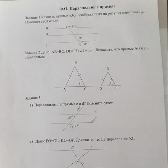 Пояснення: Як показано на малюнку, при прямих а і с та січній d відповідні кути рівні (112гр). Згідно властивостей прямих і січній можна стверджувати, що прямі а і с паралельні.