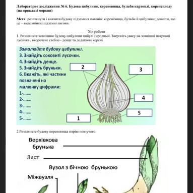 Лабораторне дослідження № 6. Будова цибулини, кореневища, бульби картоплі, коренеплоду