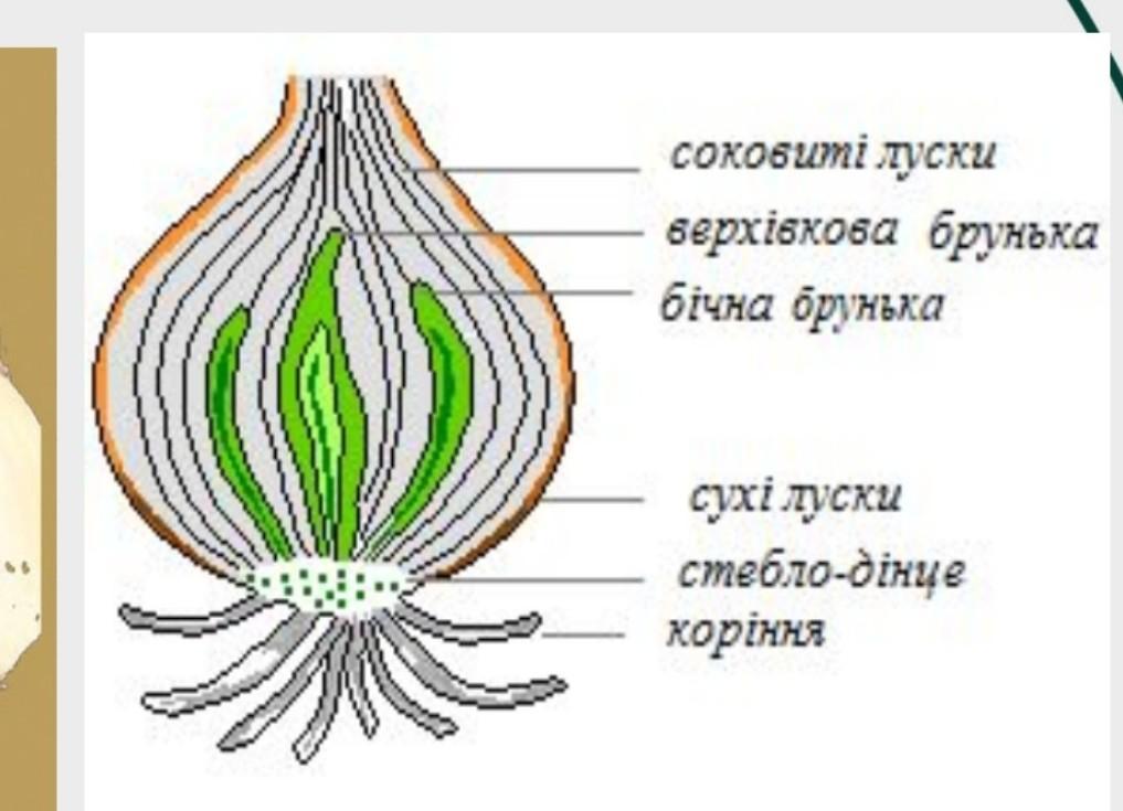 Замалюйте будову цибулини.