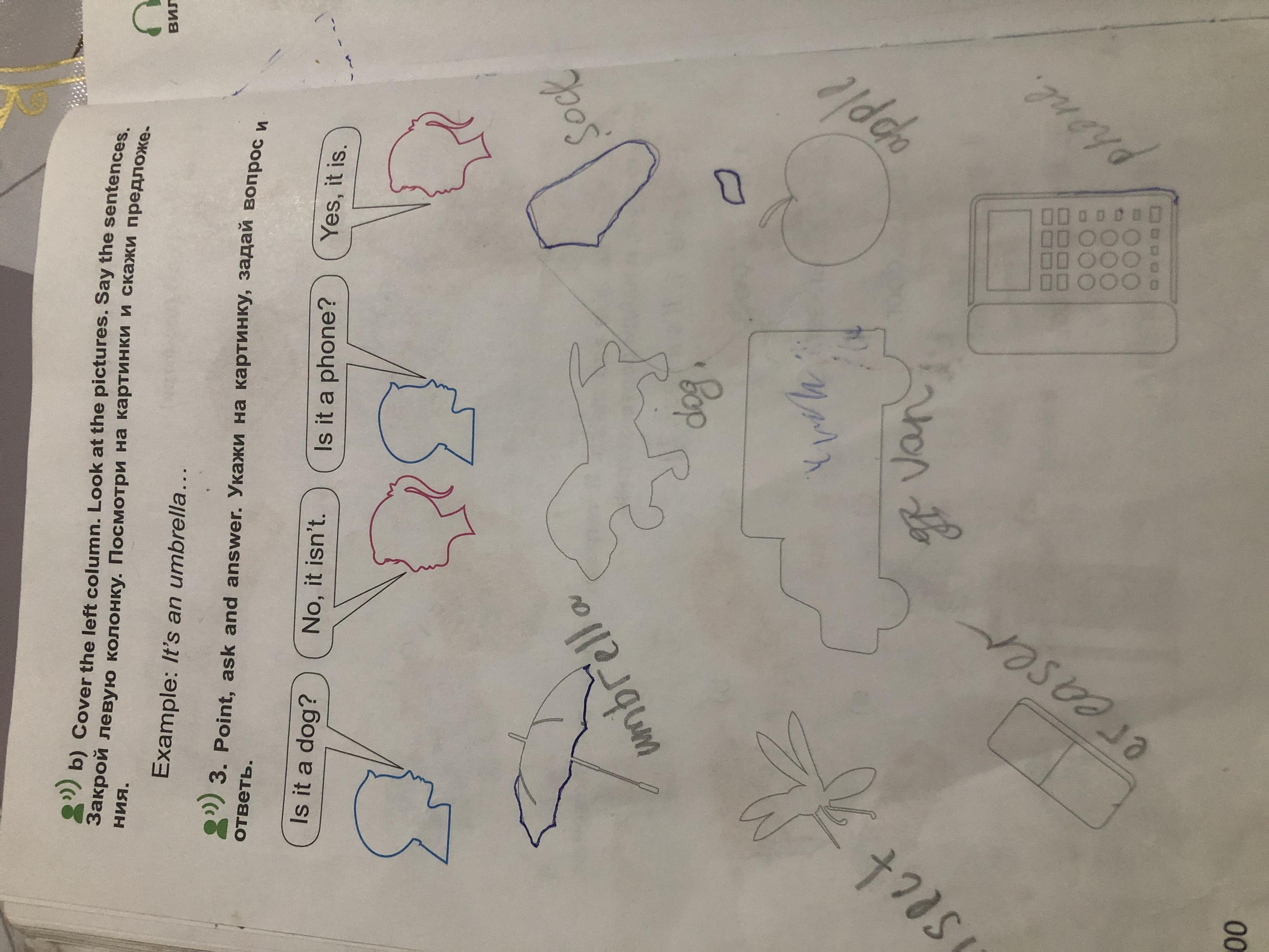 в первом указываете на любую вещь кроме собаки задаёте вопрос