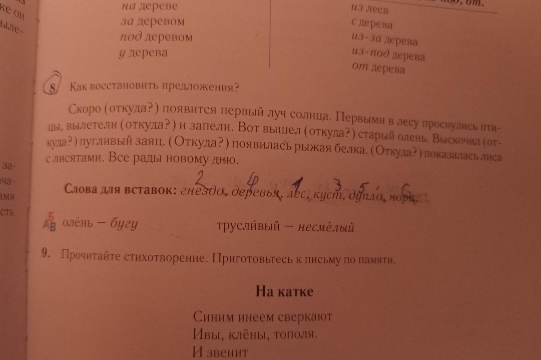 скоро из леса появится первый луч солнца. Первыми в лесу проснулись птицы, вылетели из гнезда и запели. Вот вышел из куста старый олень. Выскочил из деревьев пугливый заяц. Из дупла появилась рыжая белка. Из норы показалась лиса с листами. Все рады новому дню.
