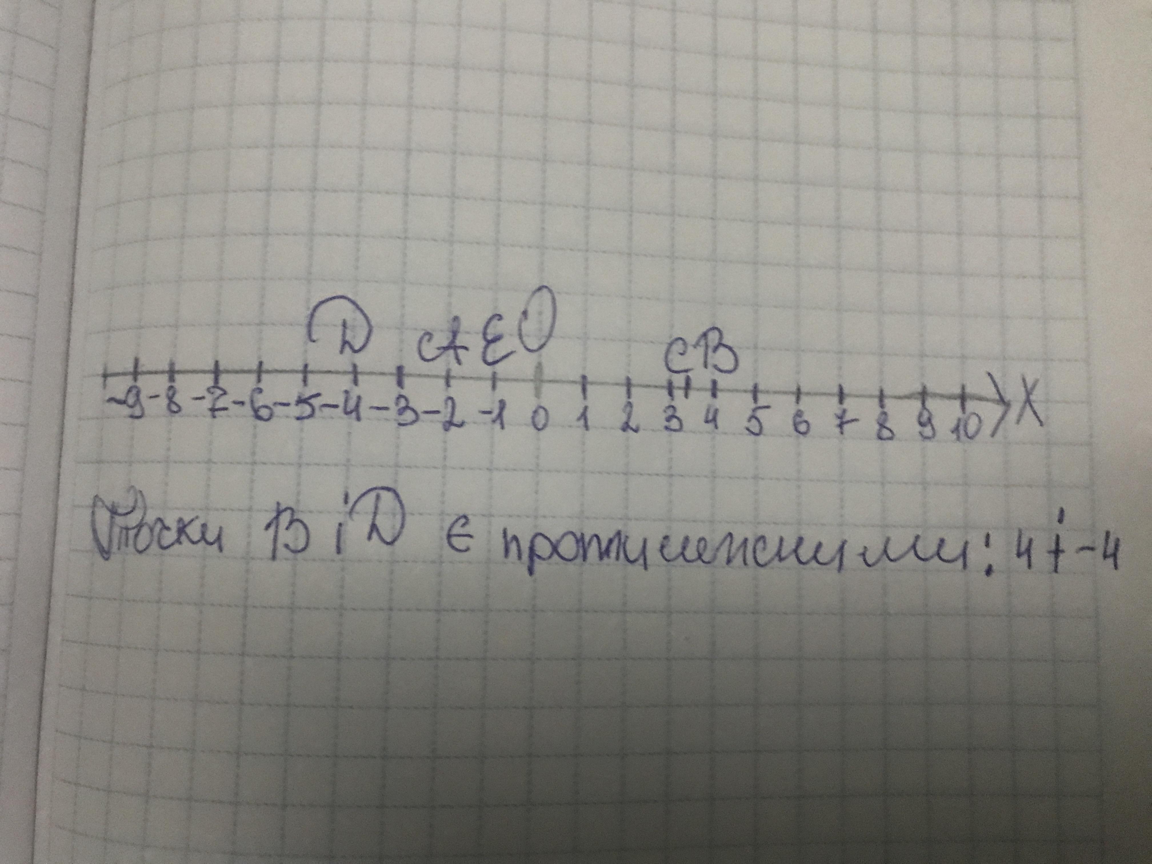Познач на координатній прямій точки А(-2), В(4), С(3,5), D(-4), E(-1). Які з позначених точок мають протилежні координати
