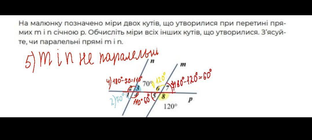 5) кут 7= 180-120=60(за вл. суміжних кутів)