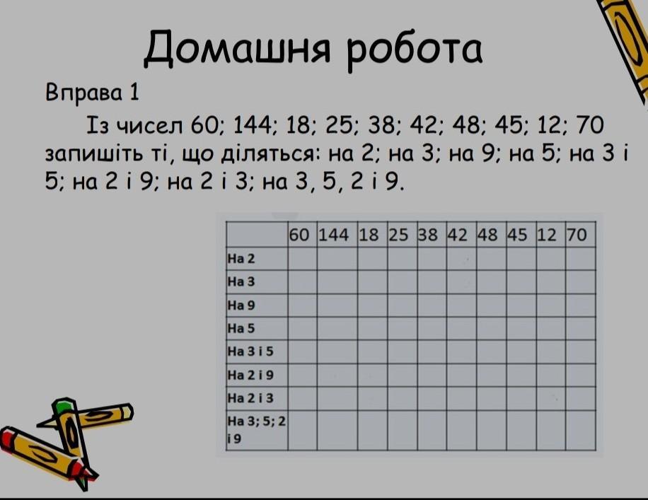 Відповідь: на 2: 18;60;48;144;38;42;12;70.