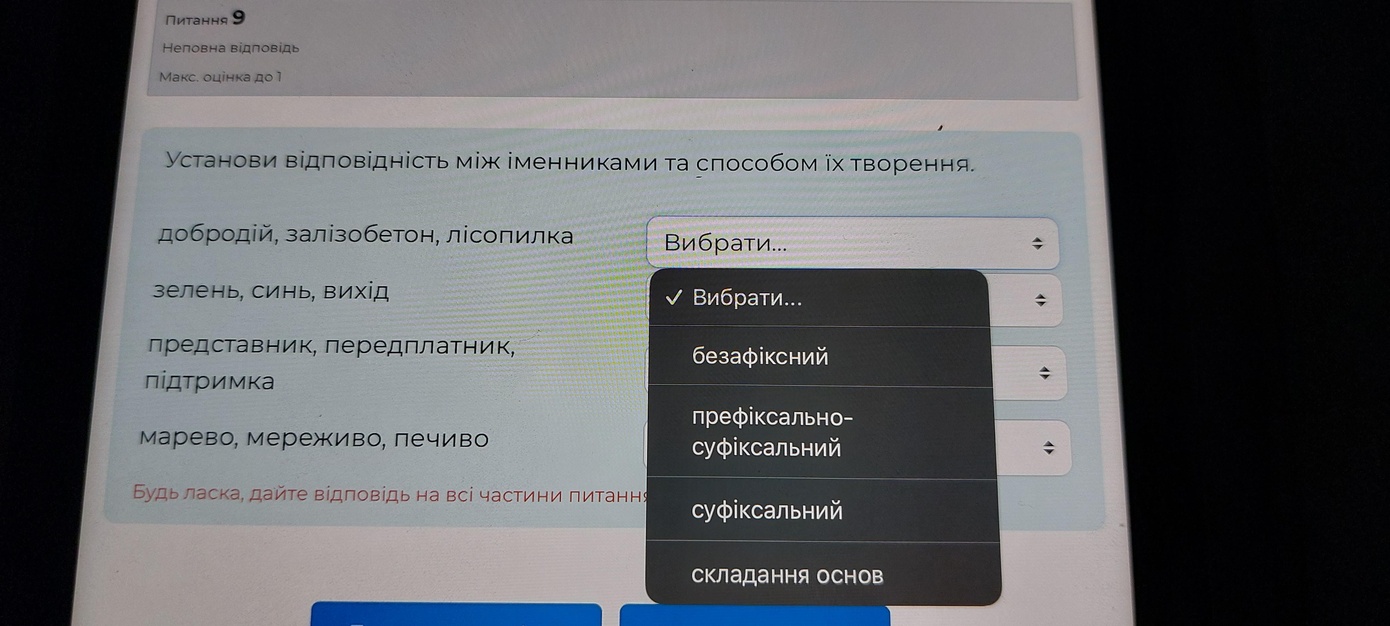 Варіанти відповідей- 1) безафіксний; прифіксально-суфіксальний; суфіксальний; складання основ.