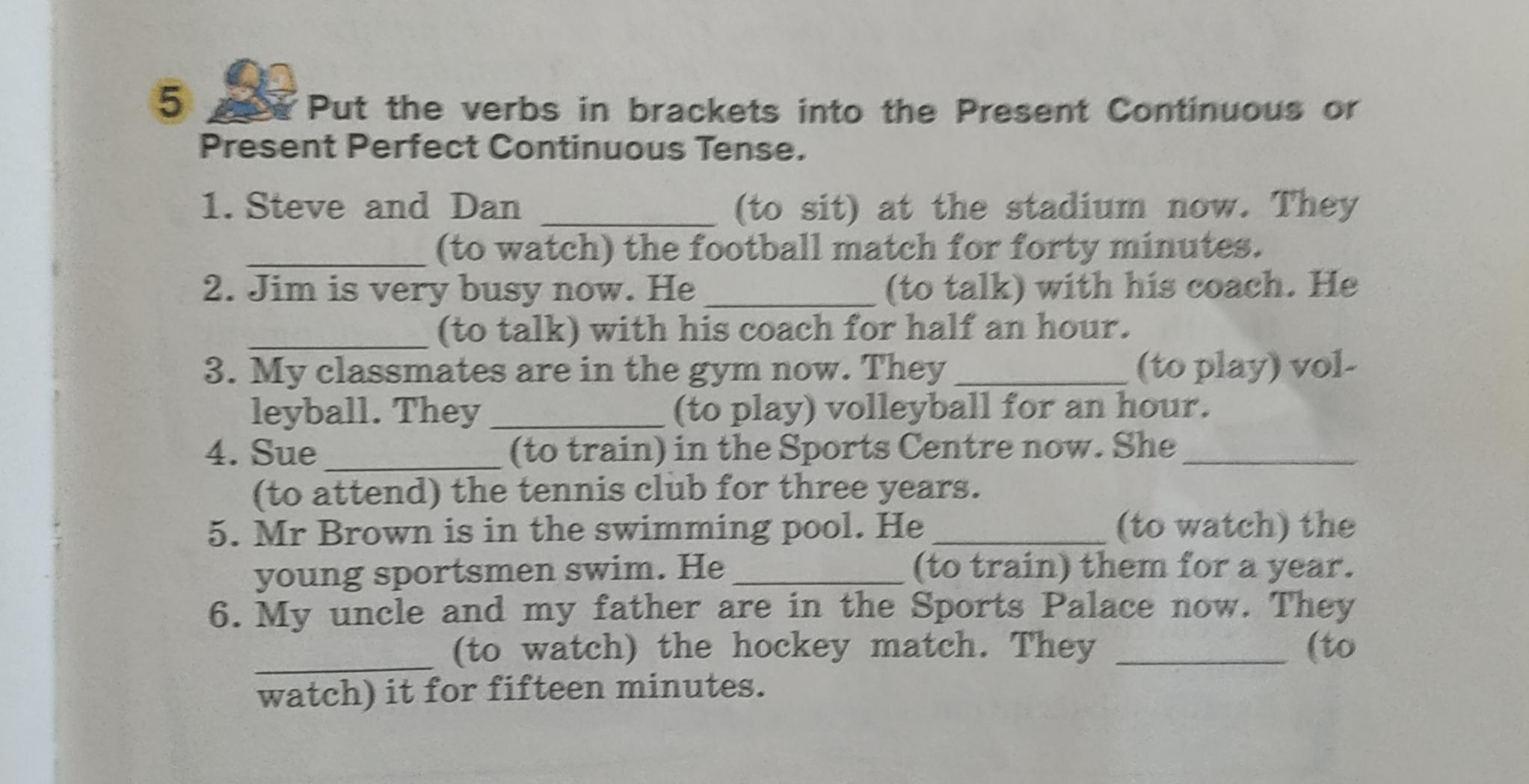 Поможіть!! Put the verbs in brackets into the Present Continuous or Present Perfect Continuous Tense. 1. Steve and Dan.....