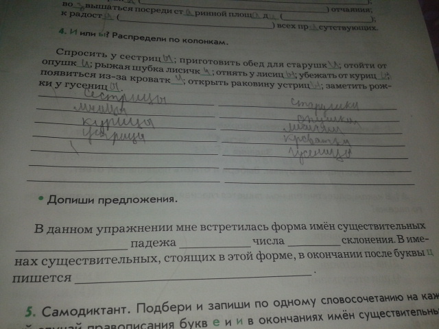 В данном упражнение мне встретилась форма имен существительных Именительного падежа множественного числа 1 склонения.В именах существительных стоящих в этой форме,в окончание после ц пишется и и ы.