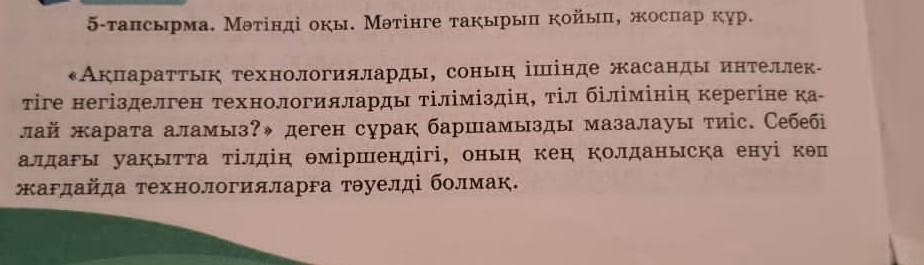 8-тапсырма. «Дербес пікір жазу» тәсілін колданып, мәтін мазмуны бо- йынша пiкiрiндi жаз (уақыт мөлшері: 7-8 минут).