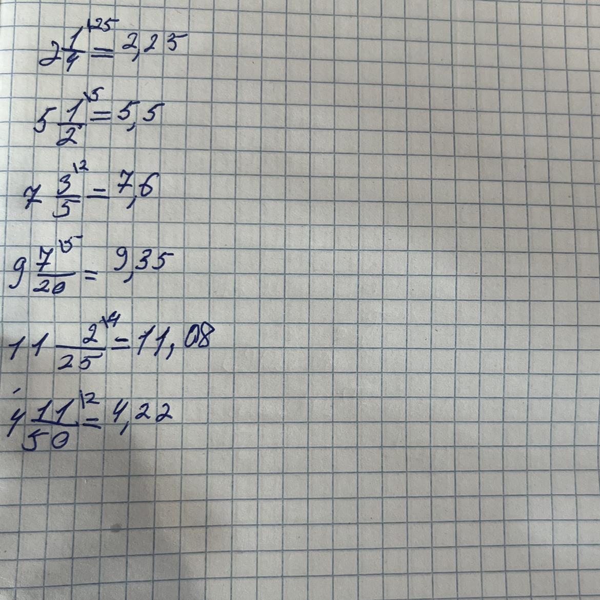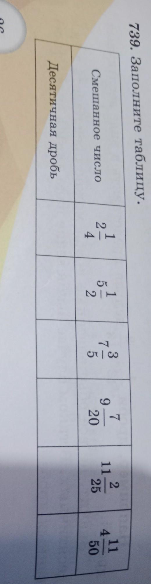39. Заполните таблицу. Смешанное число Десятичная дробь 2 1 5 2 7 315 9 7 20 2 25 11. 4- 50