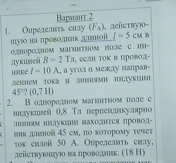 1) L=0.05 м B=2 Тл I=10 A α=45° F=?