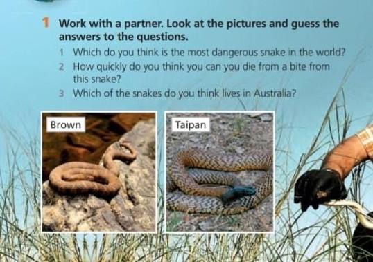 ДАЮ 70 БАЛЛОВ ПЖ 1 Which do you think is the most dangerous snake in the world? 2 How quickly do you think you can you die from a bite from this snake? 3 Which of the snakes do you think lives in Australia?