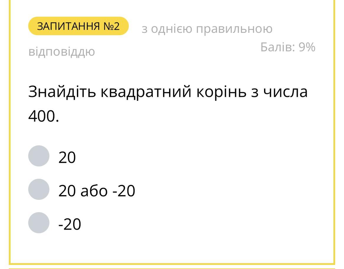 Квадратним коренем з числа 400 є 20