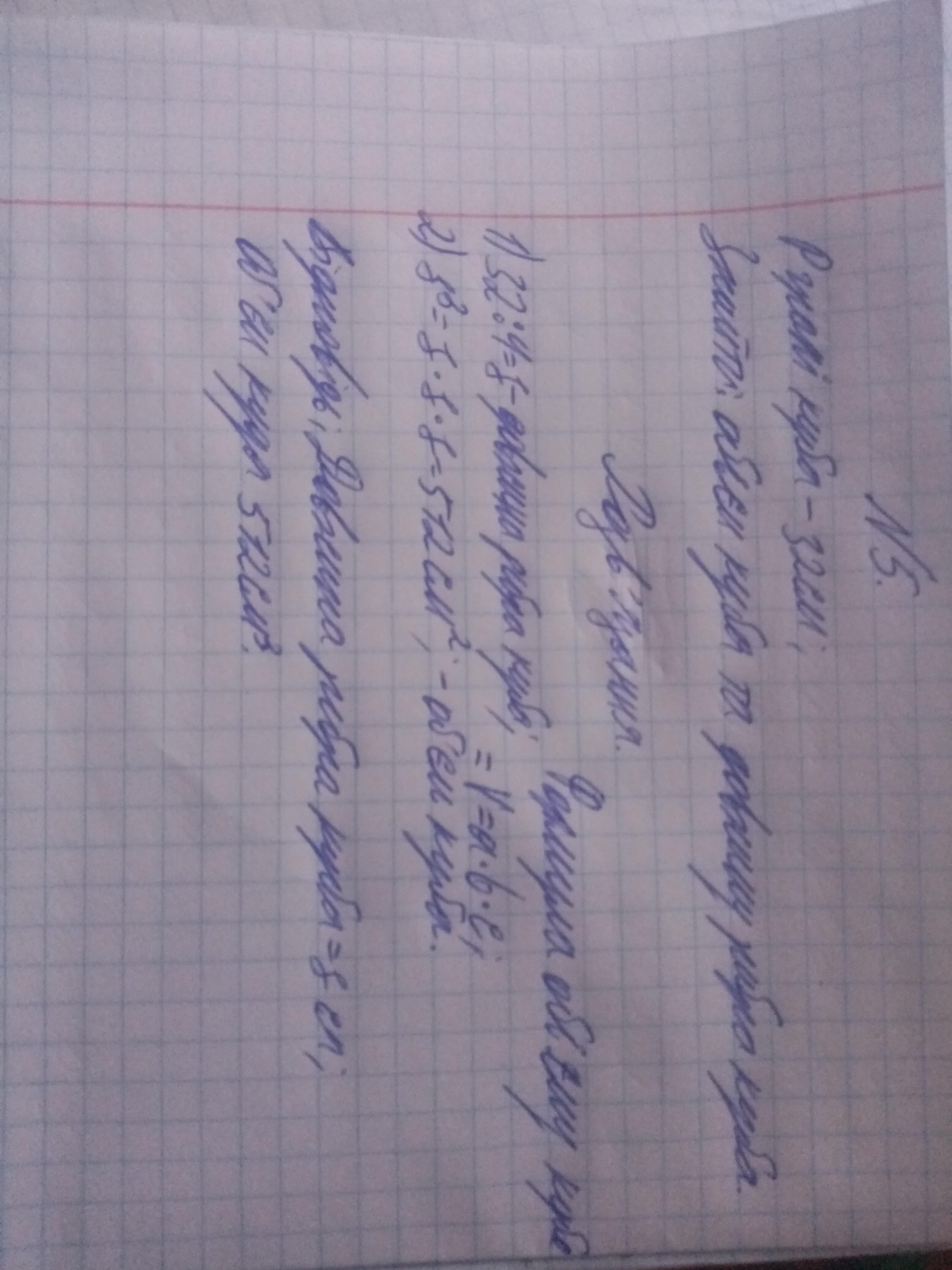 Так с початку знайдем довжину ребра куба, ми 32÷4=8.