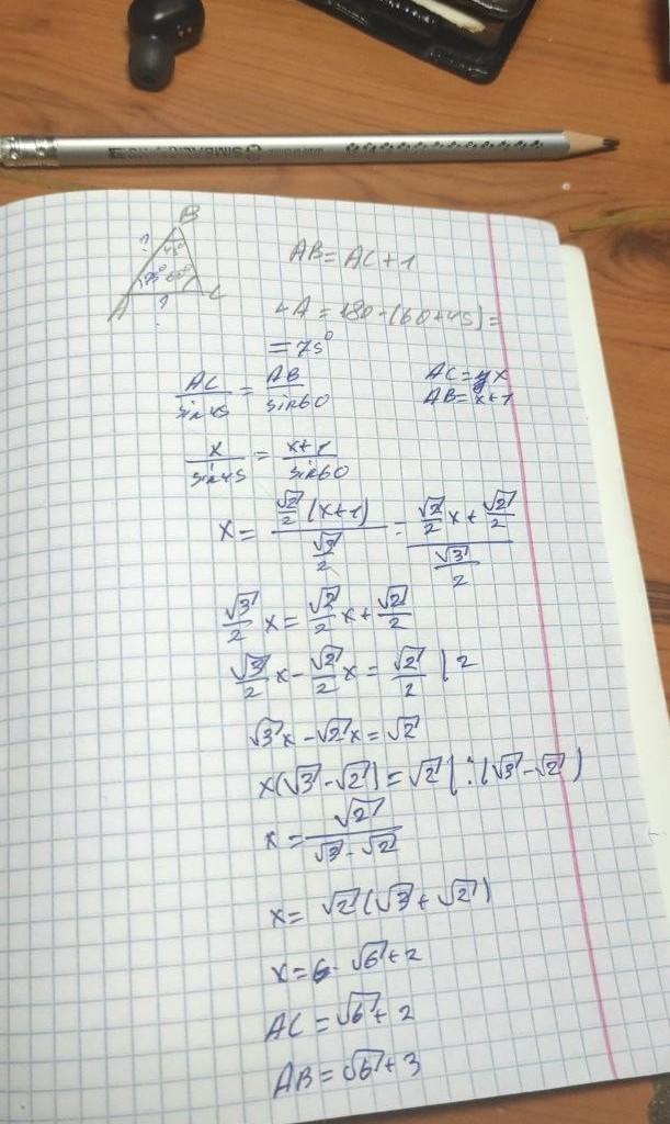 сторона АВ трикутника АВС на 1 см більша за сторону АС знайдіть сторони АВ і АС якщо кут С= 60 градусів