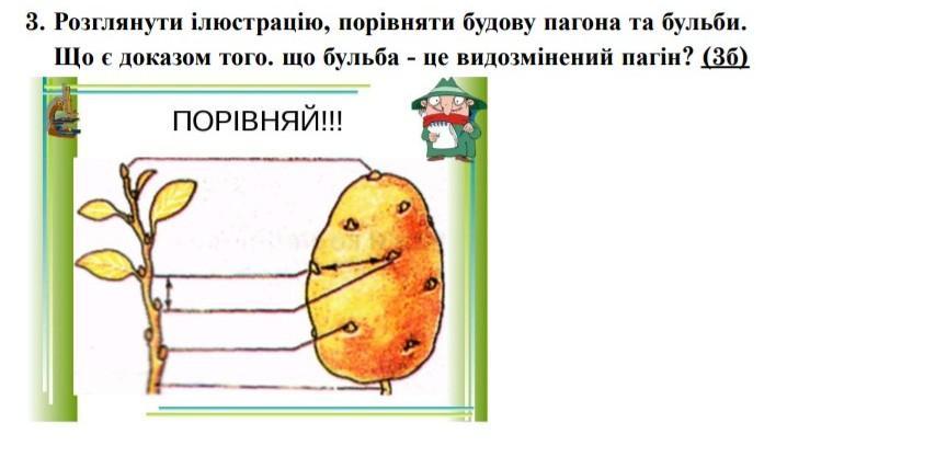 3. Розглянути ілюстрацію, порівняти будову пагона та бульби. Що є доказом того, що бульба - це видозмінений пагін ПОРІВНЯЙ!!! СРОЧНООООООООООООООО
