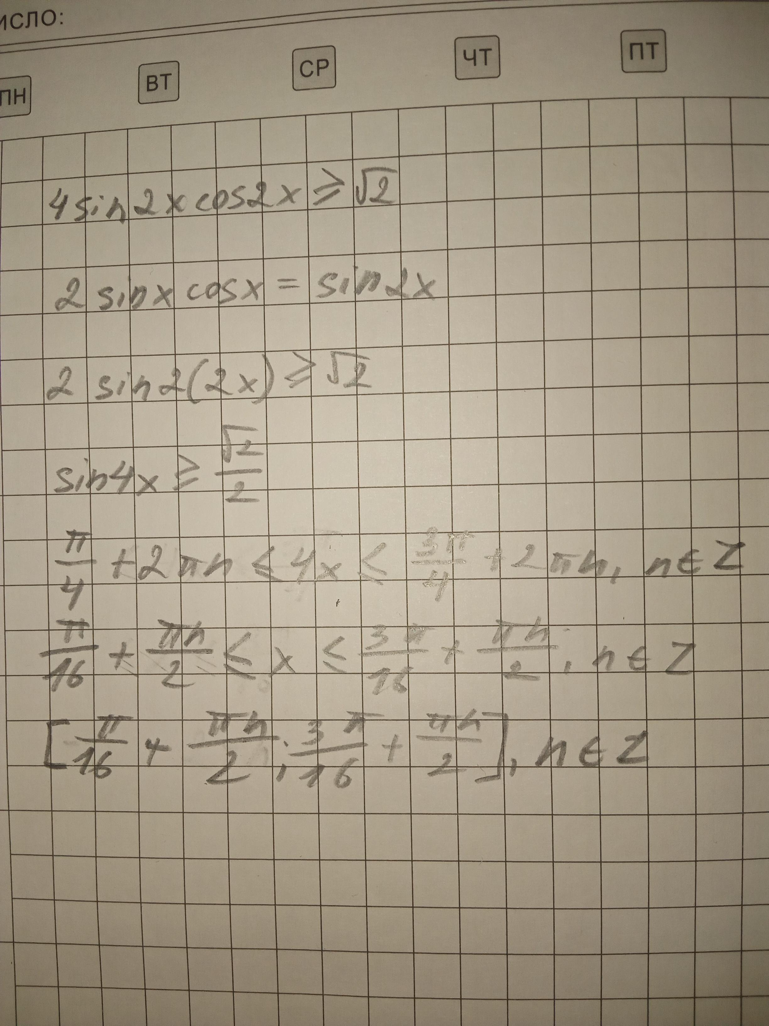 π/4+2nπ ≤ 4x ≤ 3π/4+2nπ, где n∈Z