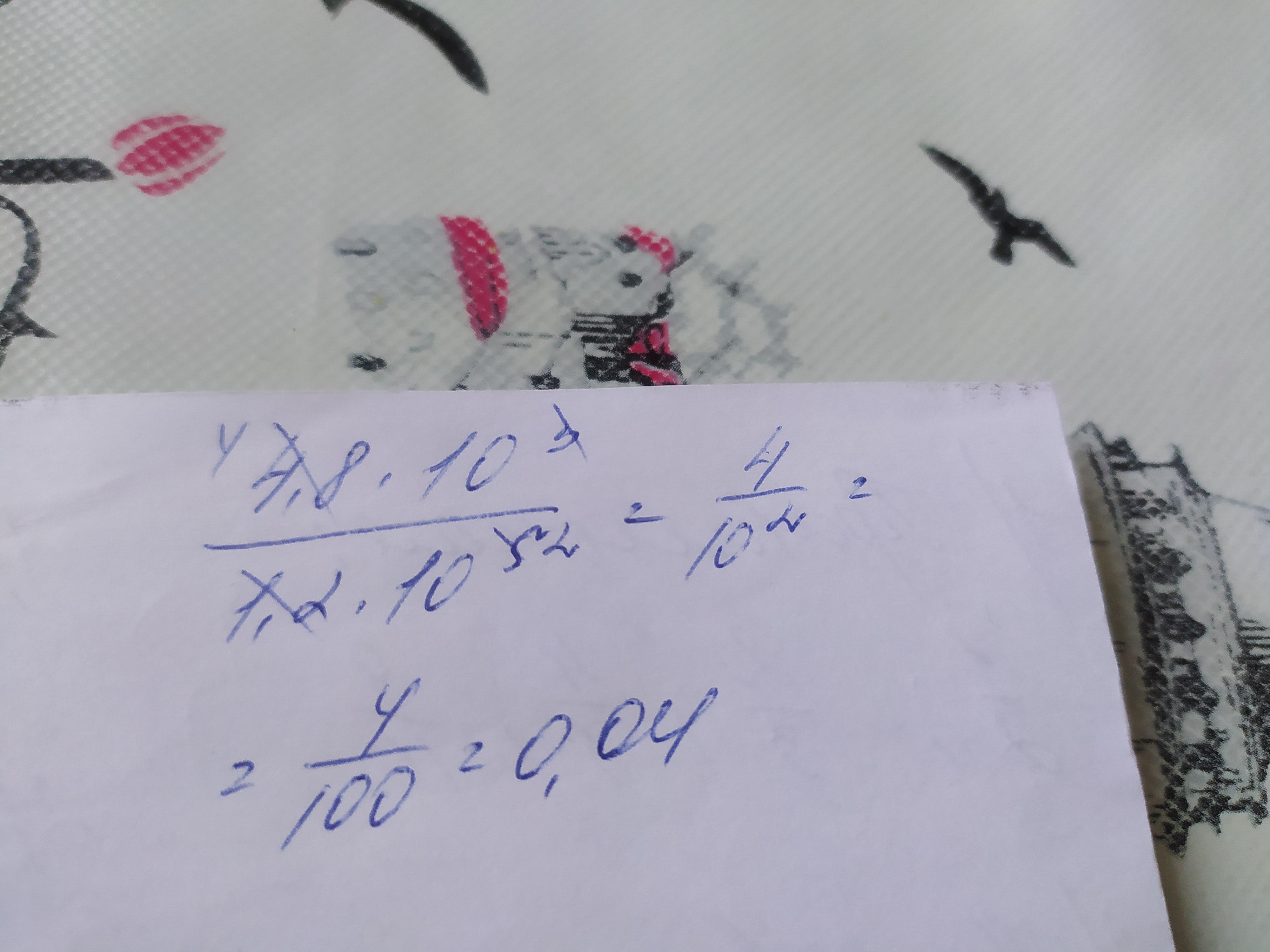 Виконати обчислення і результат записати у стандартному вигляді (4,8×10³)÷(1,2×10⁵)