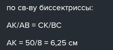 СРОЧНО!! В ΔАВС ВК бісектриса. АВ=8см, ВС=10см, АК= 4см. Знайдіть довжину сторони АС. Впишіть відповідь.