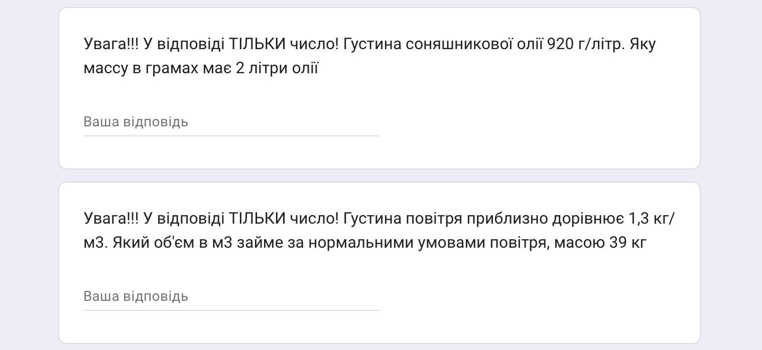 3. густина = m/V=0,920/0,001=920 кг на метр кубічний