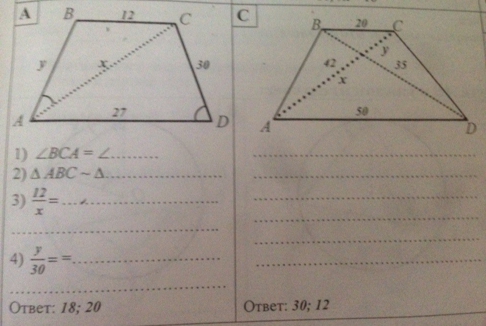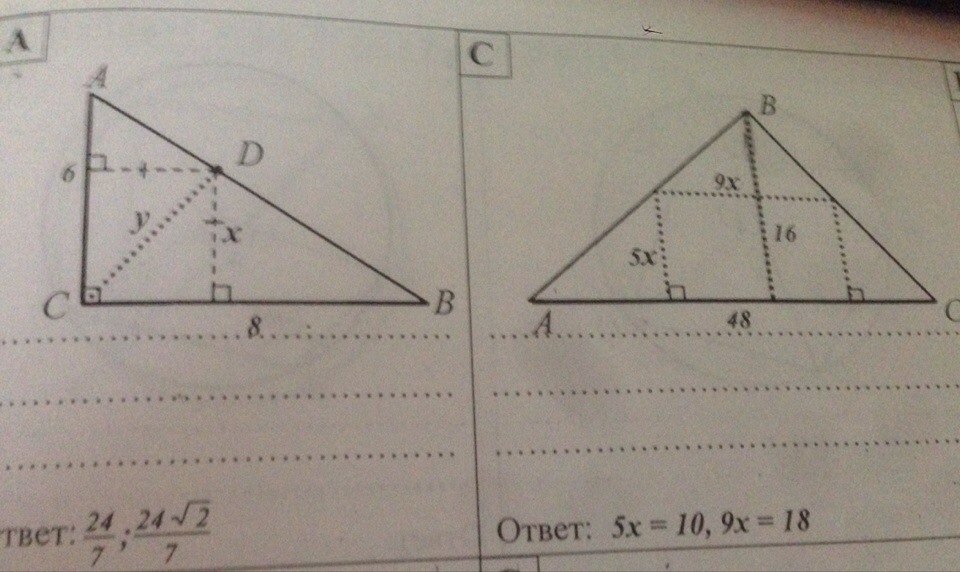 Помогите решить пожалуйста! Нужно найти неизвестные отрезки х и у в каждом из случаев