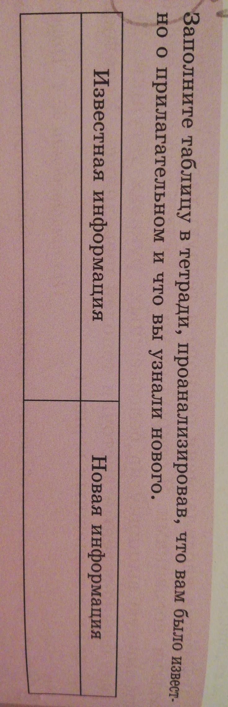 Ус Заполните таблицу в тетради, проанализировав, что вам было известно о прилагательном и что вы узнали нового.
