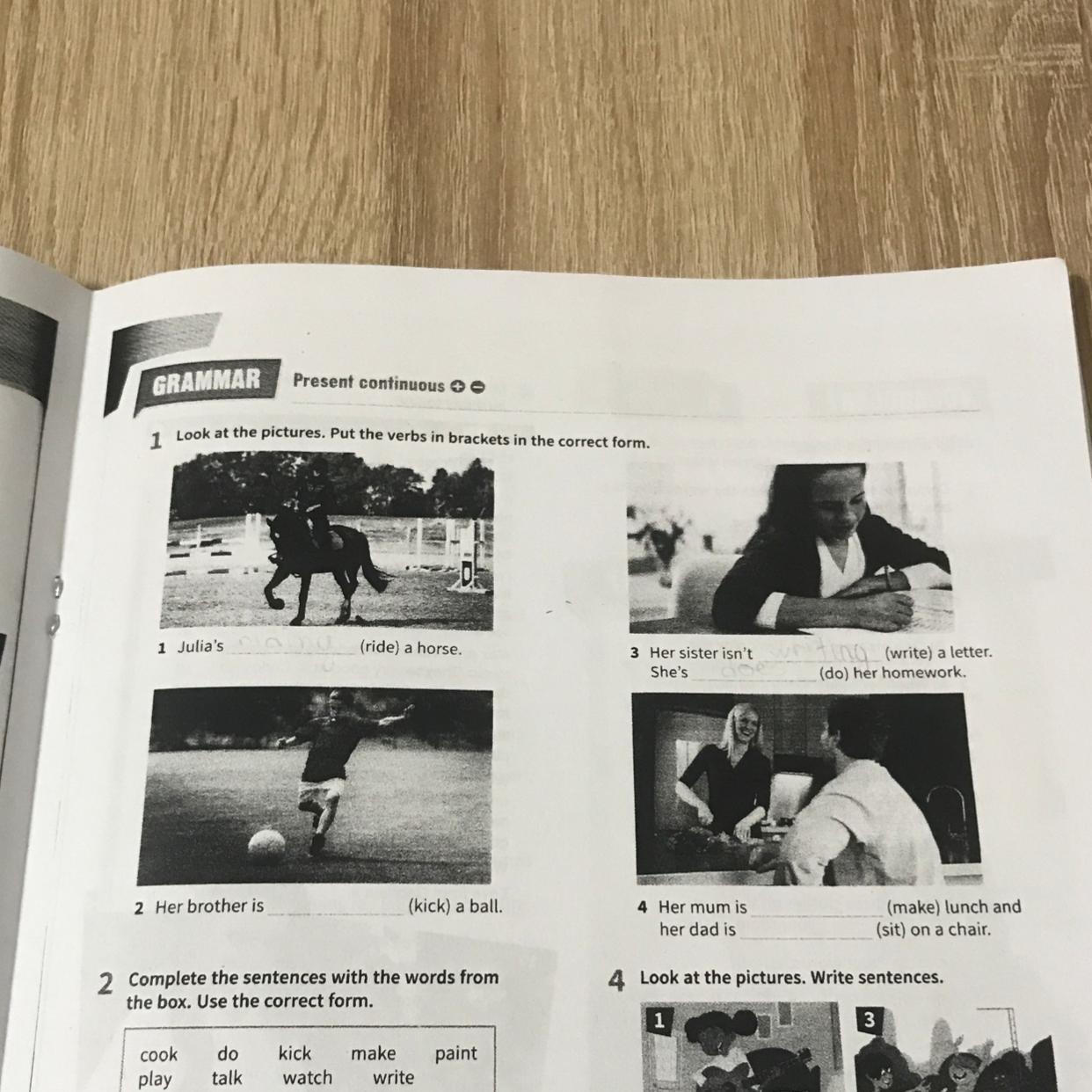 2. isn't writing ... she is doing her homework