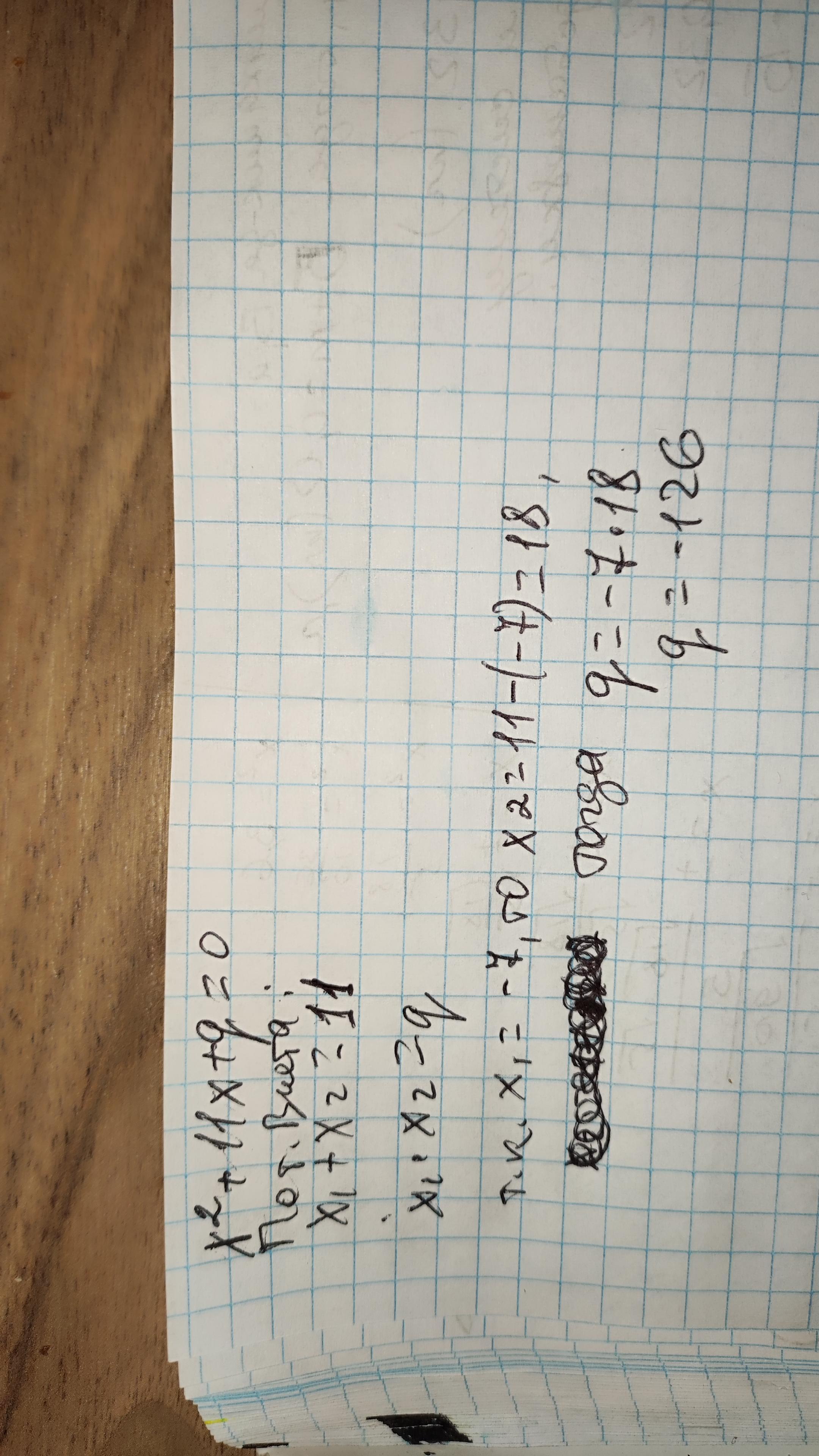 Один из корней уравнения x2 + 11x + q = 0 равен -7. Найти второй корень и свободный член.