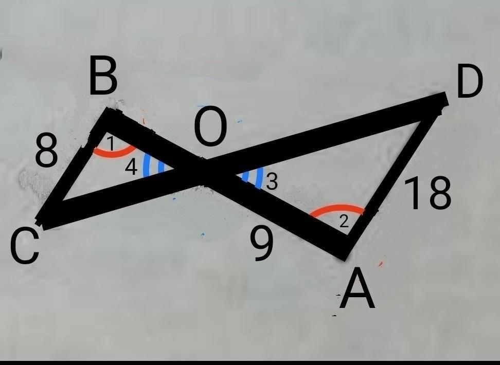 1. ∆ BOC ~ ∆ AOD по двум углам