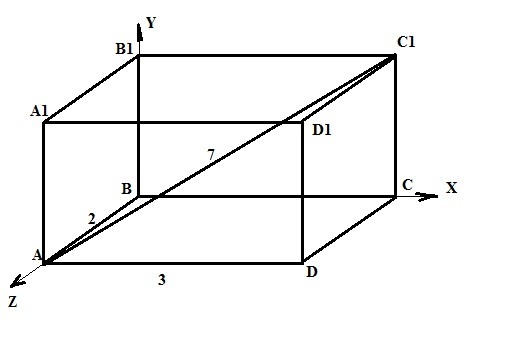 В прямоугольном параллелепипеде АВСDA1B1C1D1: AB = 2см, AD = 3см, AC1 = 7см. Найдите расстояние между прямыми AB и B1C1.
