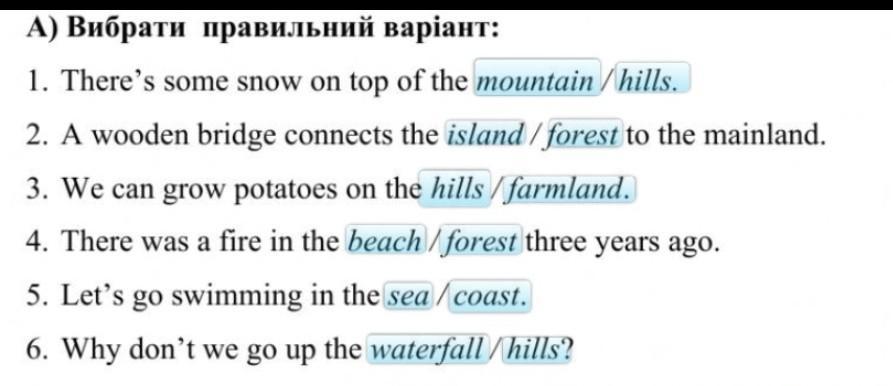 1 mountain . 2 forest . 3 farmland . 4 forest . 5 sea . 6 hills