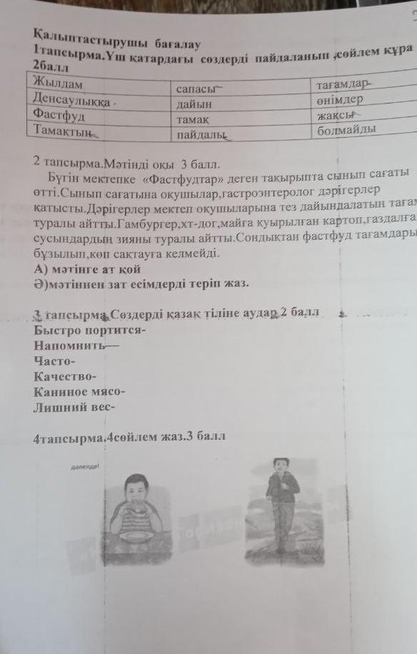 Ответ:1.Денсаулыққа пайдалы тағамдар. Тамақтың сапасы жақсы. Фастфуд дайын өнімдер. Жылдам тамақ болмайд