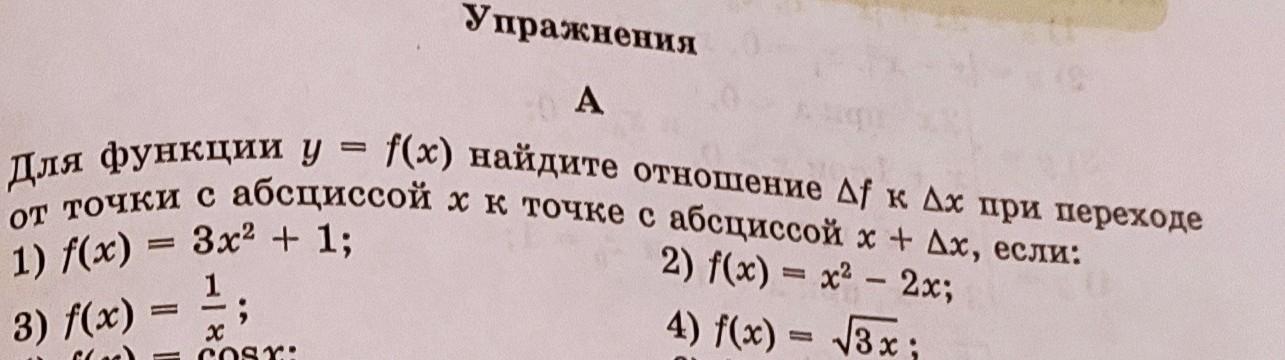 Для функции у - f(x) найдите отношение ∆f к ∆х при переходе от точки с абсциссой х + ∆х, если: