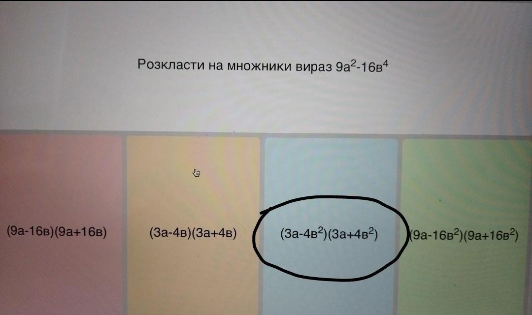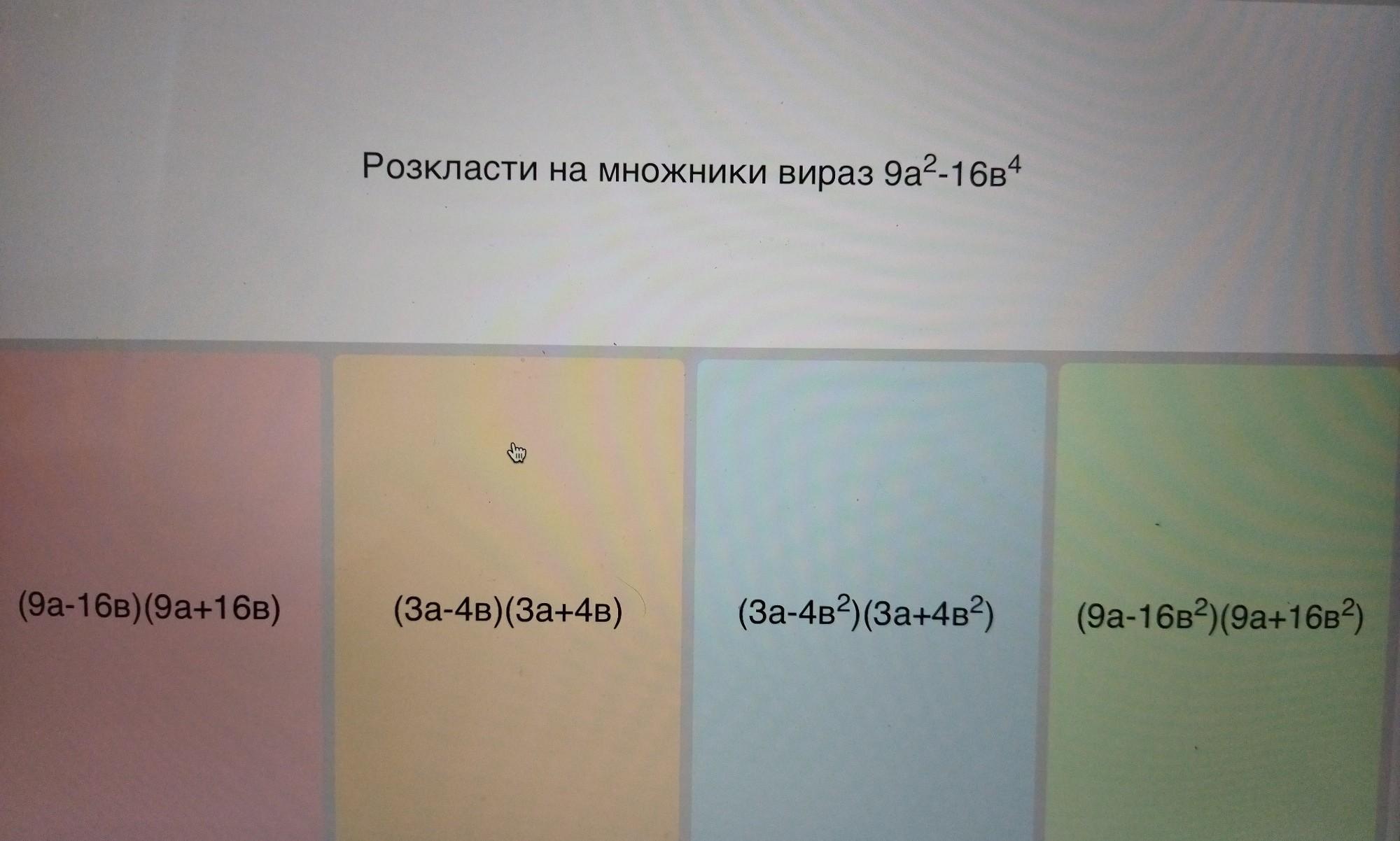 9а^2 - 16b^4 = (3а-4b^2)(3a+4b^2)