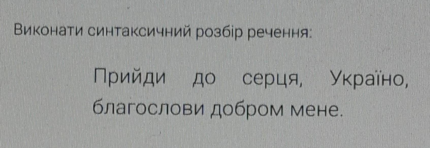 Ответ: Прийди-присудок,до серця-обставина,Україно-підмет,благослови-присудок,добром-додаток,мене-додаток