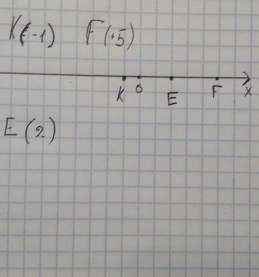 Накресліть координатну пряму і позначте на ній точ- ки К (−1) i F(5). Знайдіть на прямій точку Е таку, що К є серединою відрізка EF, та визначте координату точки Е.