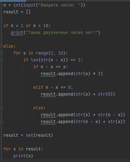 result.append(str(x) + str(n - x))