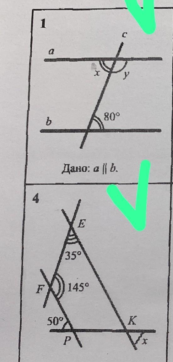 1. Так як а||b, внутрішні різносторонні кути рівні, x=80°