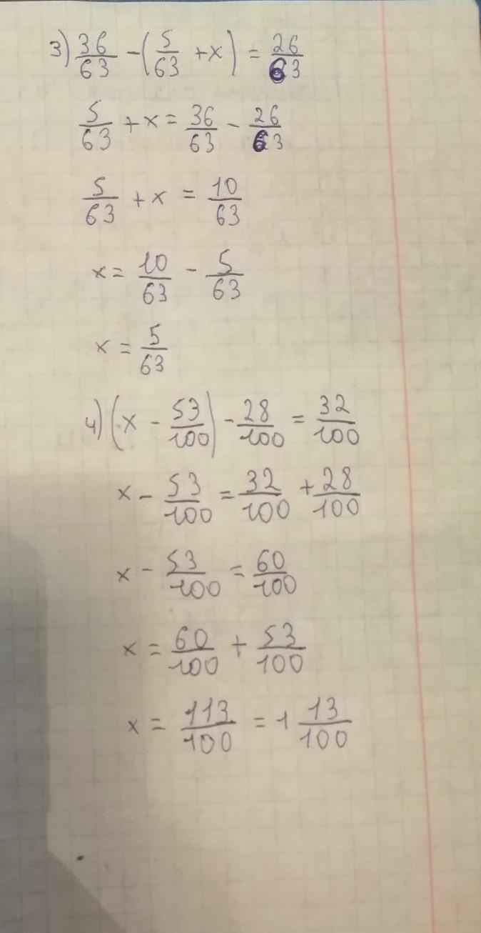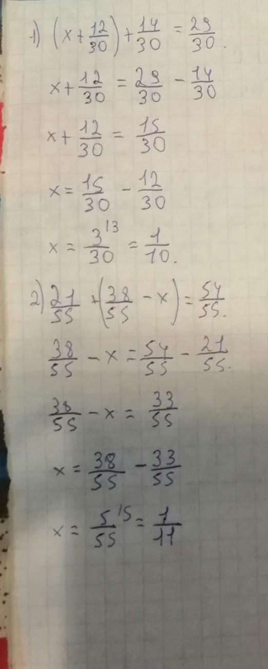 Розв’яжіть рівняння: 29 30 54 55 1) x + x + 21 55 36 63 4) x 2) 3) + 12 30 38 55 + 53 100 ▬▬ 14 30 x 5 + X 63 = ; 26 =)= 28 32 100 100 ; 63 :